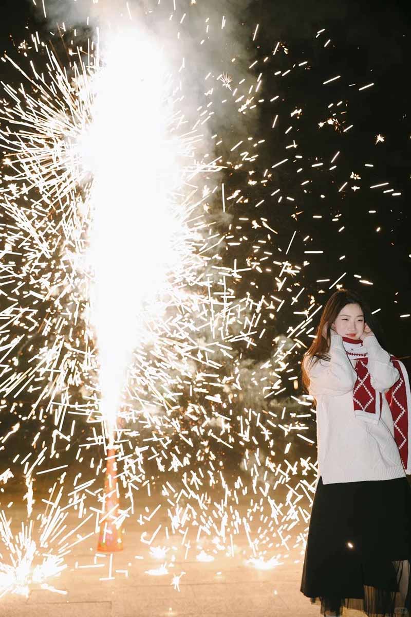 仰头/低头/看烟花/伸手接烟花🎆蹲在旁边✨这几个姿势真的zui容易出片喔~ 氛围感直接拉满